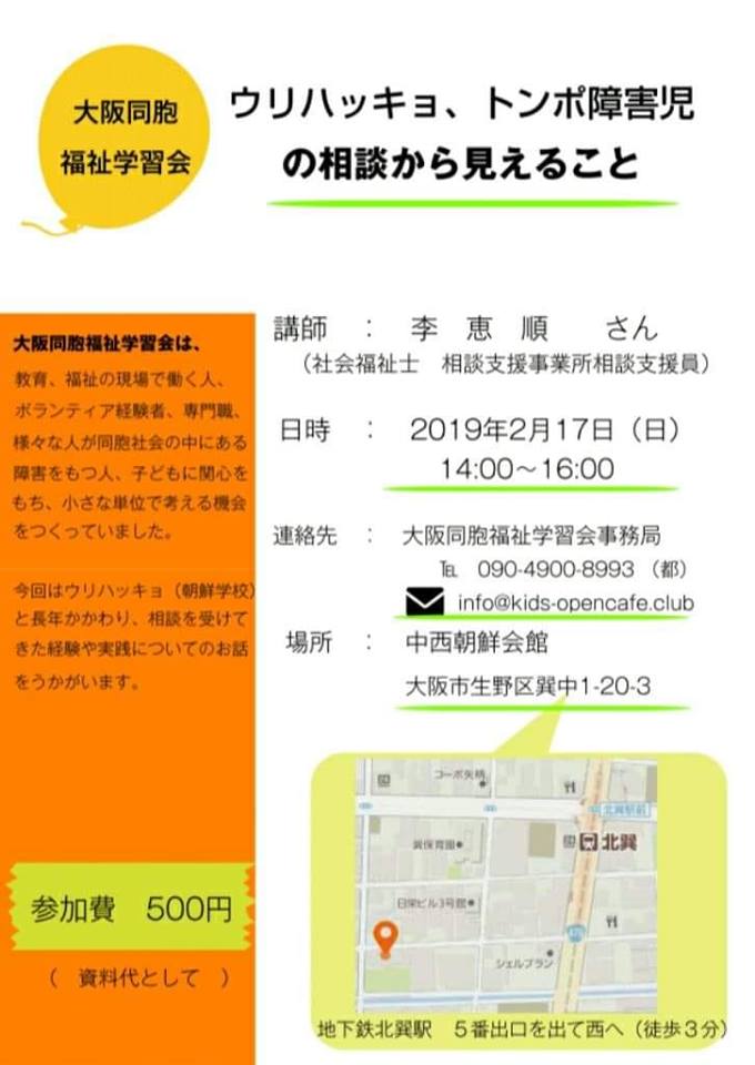 去る2月17日(日)大阪同胞福祉学習会主催の表記の学習会に参加しました。