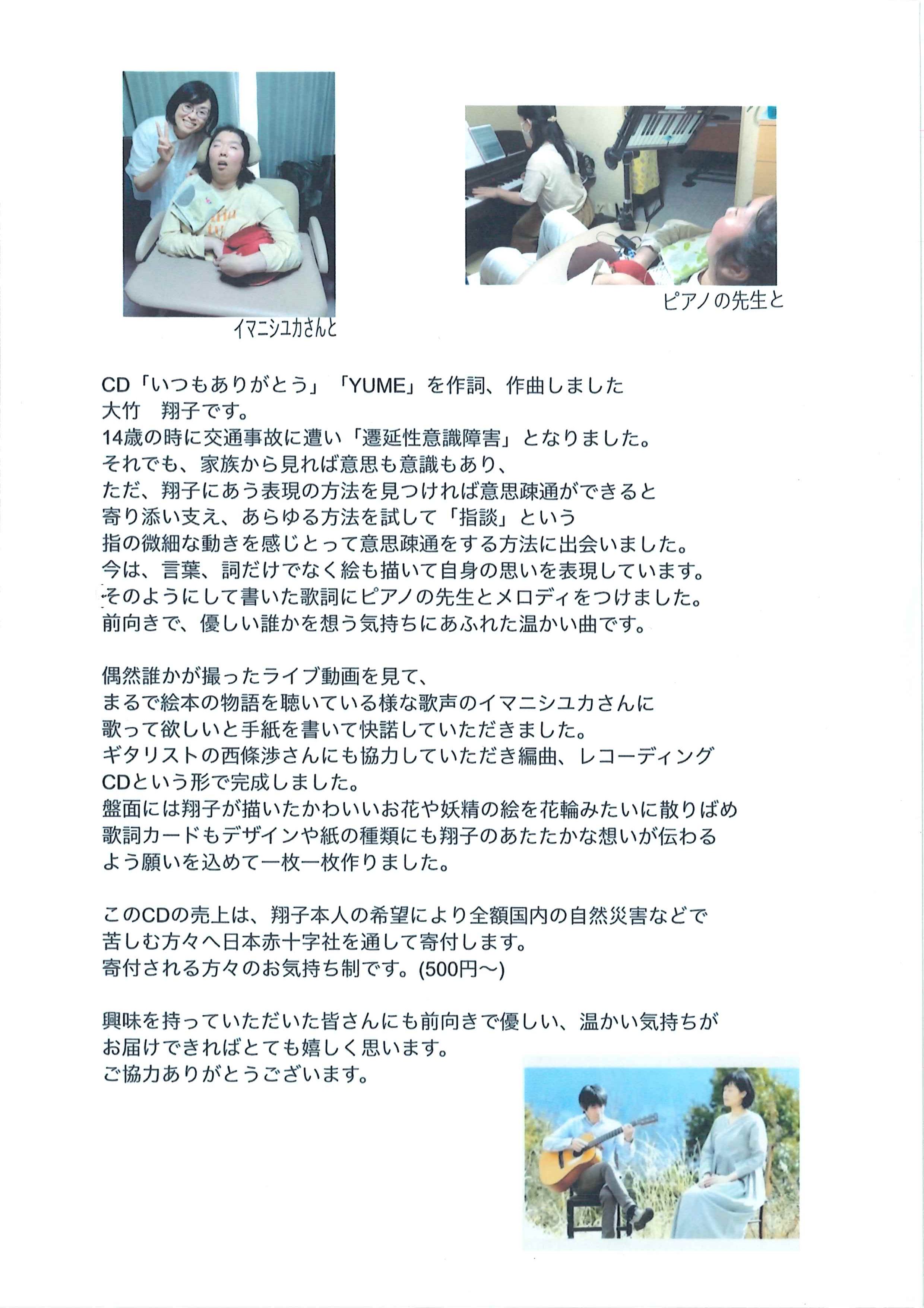 CD「いつもありがとう」「YUME」を歌詞、作曲しました大竹 翔子です。