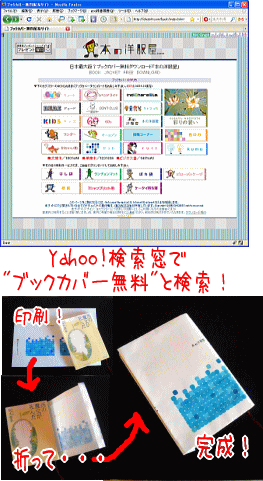 @ Yahoo!検索窓で「ブックカバー無料配布」と検索して下さい。検索結果のページ、一番上に出たホームページが目的のサイトです。