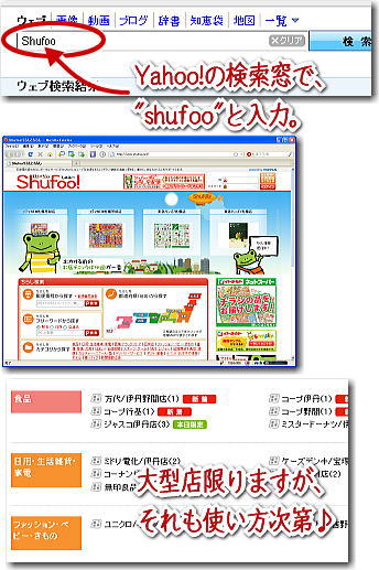 ■Yahoo!検索窓で、"Shufoo"と検索して下さい。