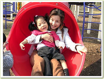 滑り台を楽しむあかりちゃん(と聖子ちゃん・・・後ろ)